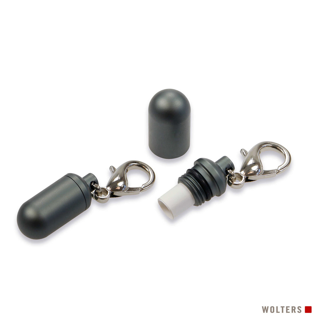 Mit der Aluminium-Adresshülse von WOLTERS ist dein Hund für alle Fälle bestens ausgestattet. Das kleine Accessoire wird mithilfe des Karabinerhakens einfach am Halsband befestigt und enthält ein ausfüllbares Adresskärtchen – so sind die wichtigsten Kontaktdaten von Herrchen oder Frauchen immer griffbereit.