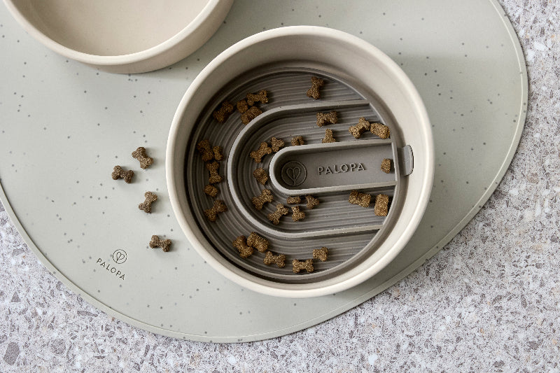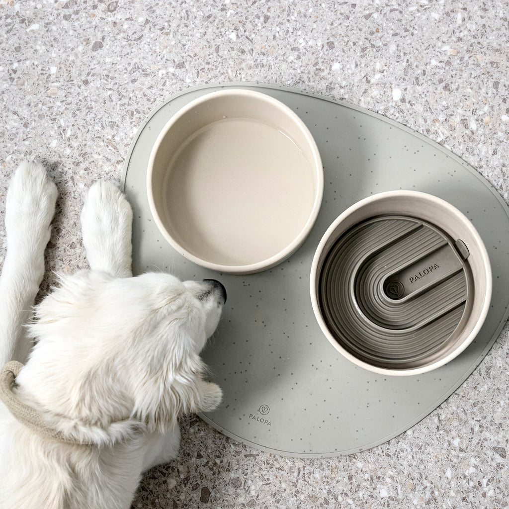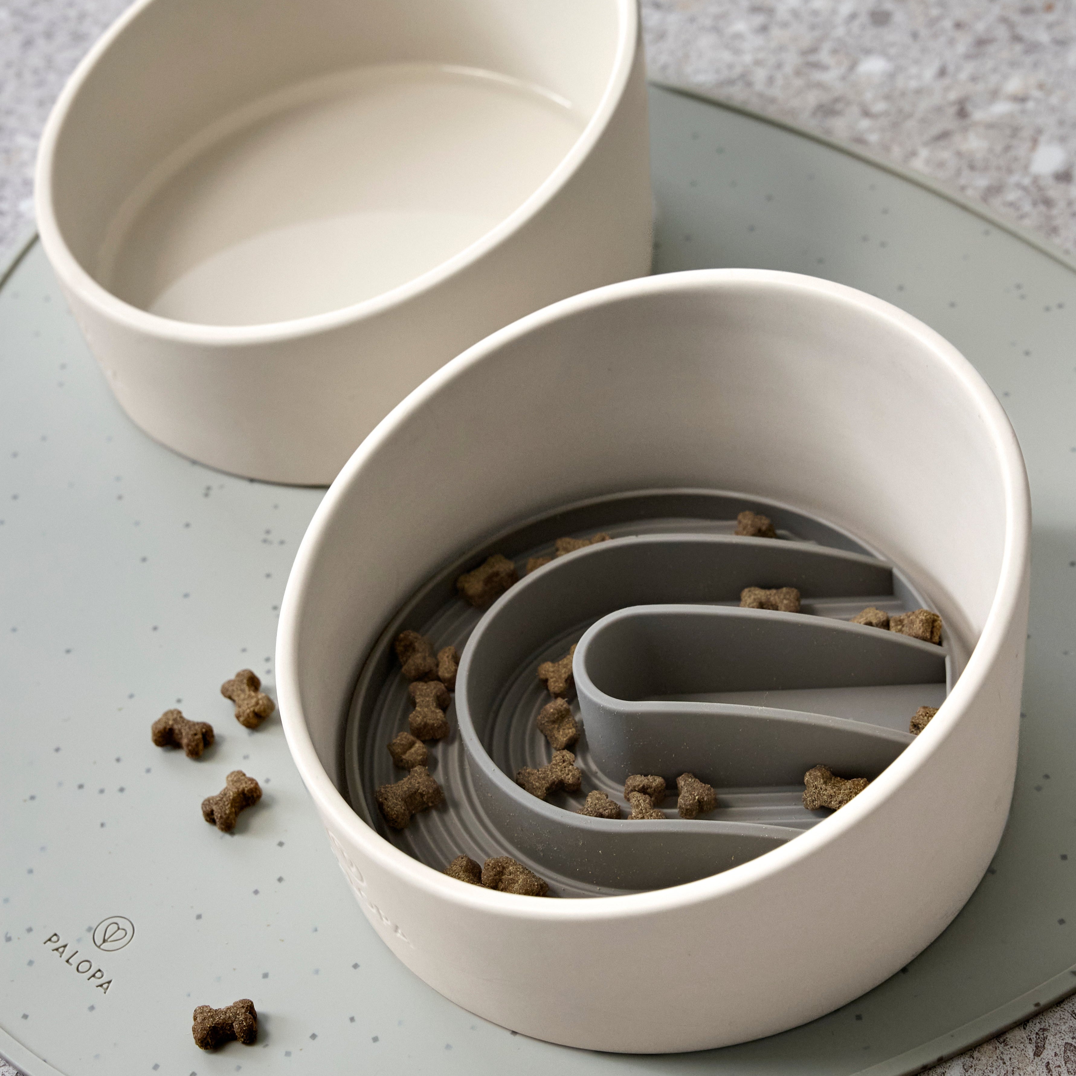 Für alle Vierbeiner, die ihr Futter gerne hastig verschlingen: Der Anti-Schling Einsatz Yumo von PALOPA passt perfekt in den Porzellannapf Cali und sorgt dafür, dass dein Hund langsamer frisst. So wird die Fresszeit verlängert, das Sättigungsgefühl verbessert und die Verdauung unterstützt.