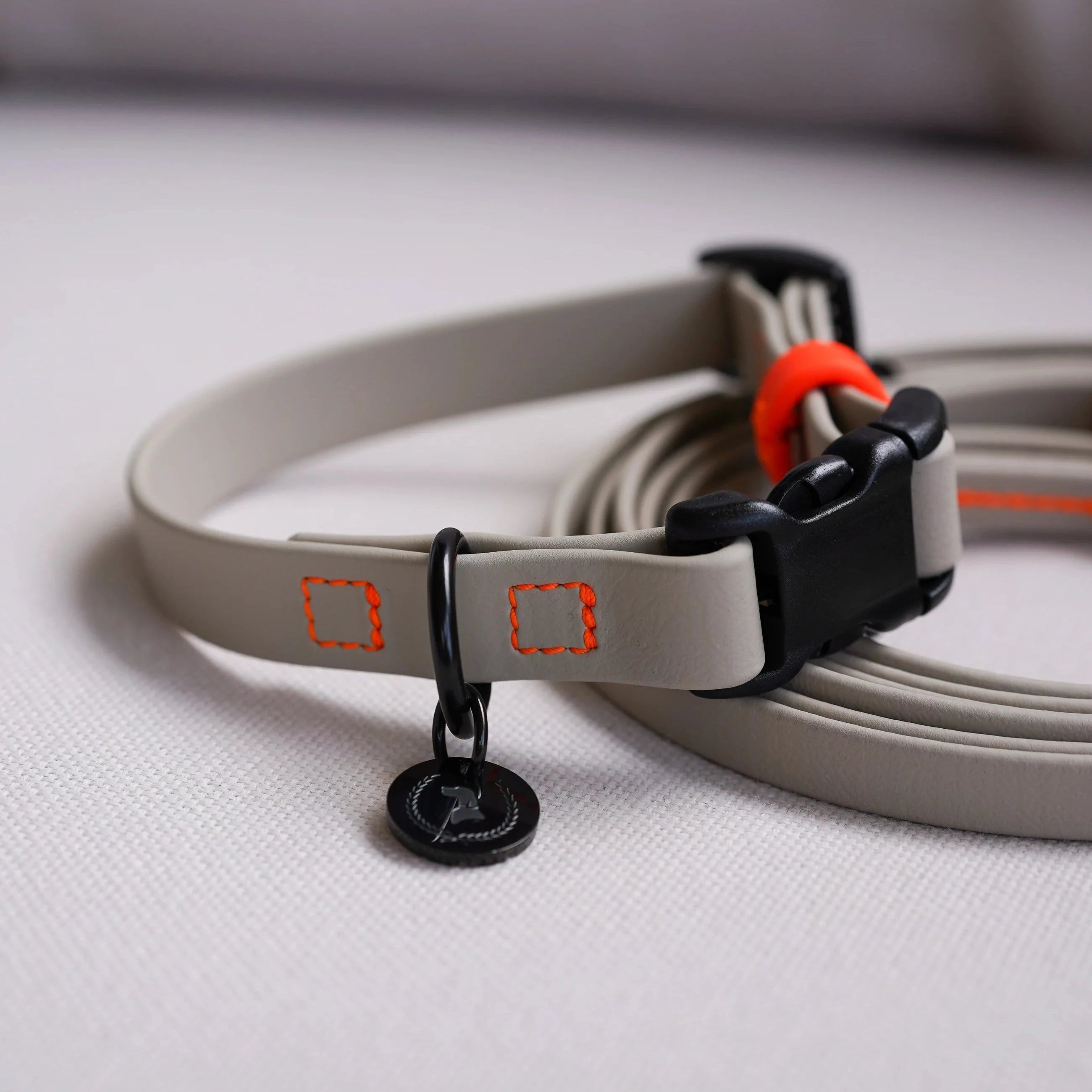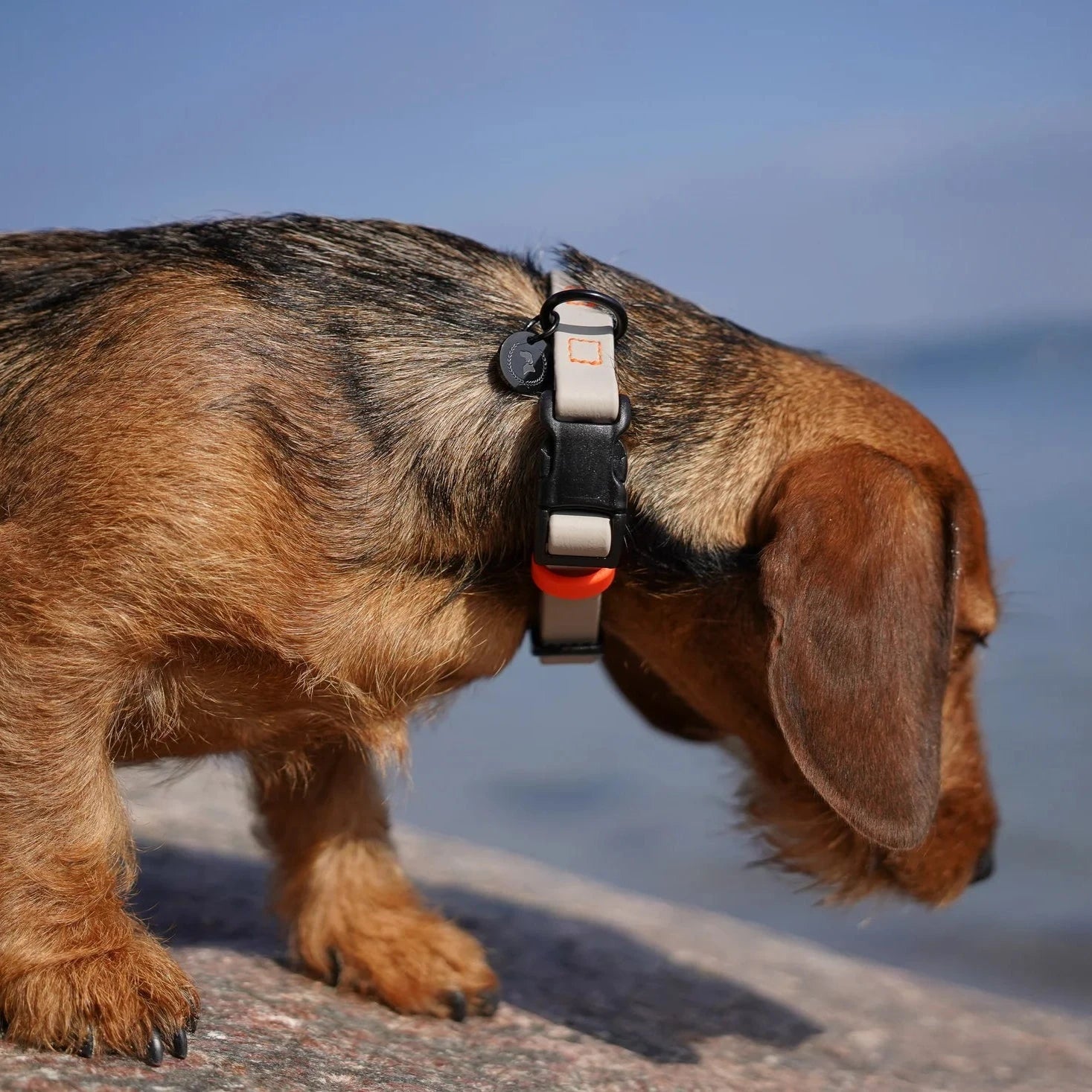 Das NEMI-Halsband kombiniert die moderne Farbe Taupe mit eleganten schwarzen Beschlägen und setzt mit Nähten in leuchtendem Neonorange einen frischen Akzent. Die Variante SMALL ist extra für kleine Hunde gemacht - leicht und schmal. Dank des praktischen Klickverschlusses lässt es sich schnell anlegen und wieder abnehmen. Die stufenlose Größenverstellung sorgt für optimalen Tragekomfort.