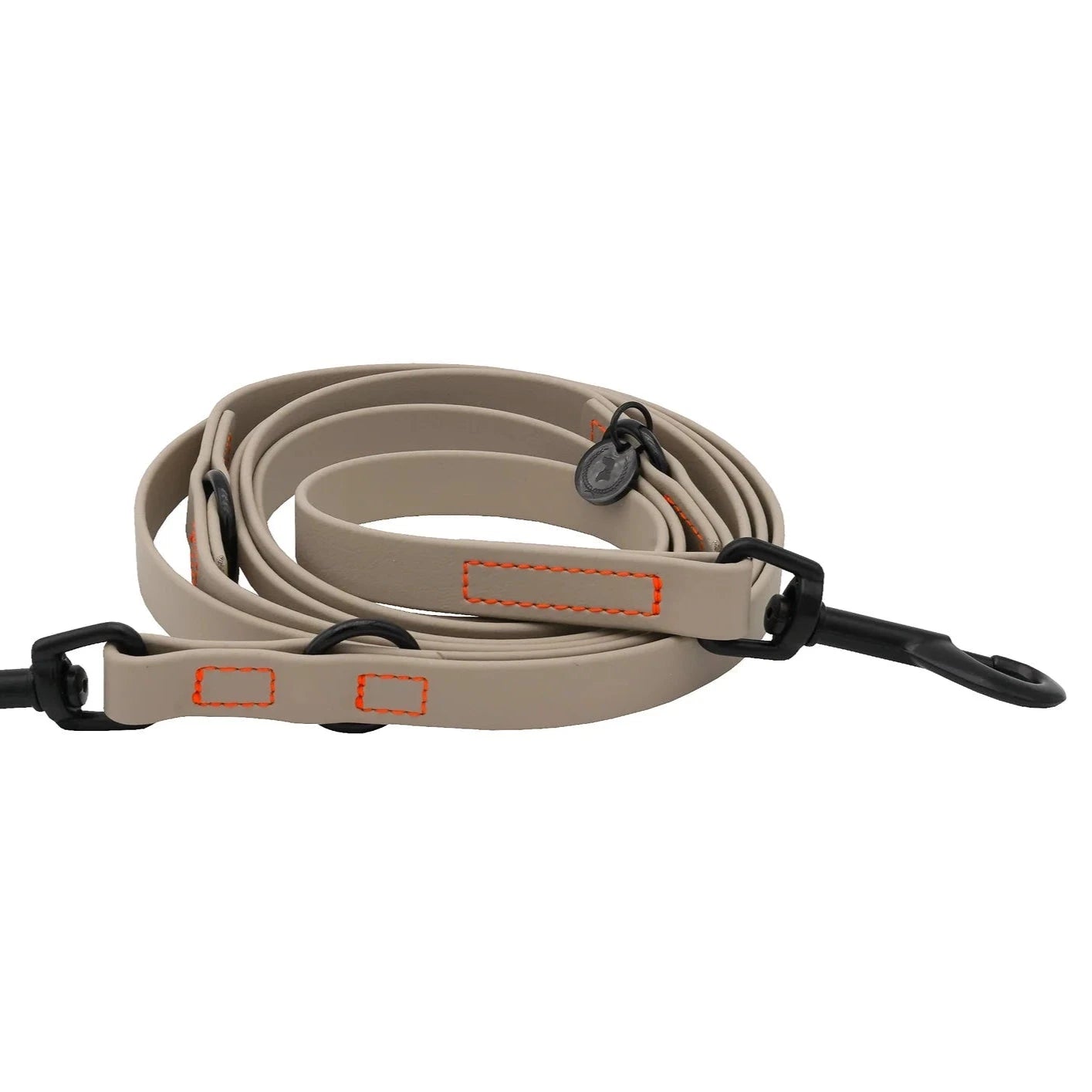 Die Biothane Leine NEMI SMALL von Fatissimo vereint die moderne Farbe Taupe mit schwarzen Karabinern - ein edler Look! Abgerundet wird das Design durch die Nähte in Neon Orange. Die Leine lässt sich mehrfach verstellen. Du kannst sie als ''hands free'' - Leine tragen oder als kürzere City-Leine nutzen. Der perfekte Begleiter für alle Abenteuer und jede Wetterlage!