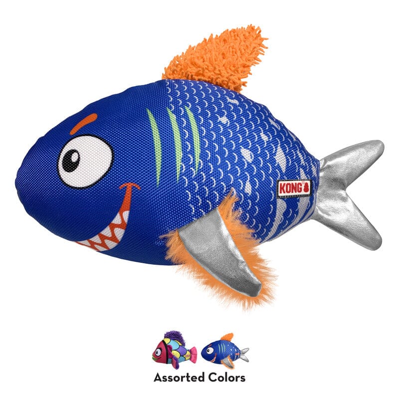 KONG Reefz haben verschiedene Texturen und flache, flexible Körper, die sich großartig zum Schütteln und Schleudern eignen; sie quietschen und glänzen, um das Interesse von Hunden zu wecken – und länger damit zu spielen.