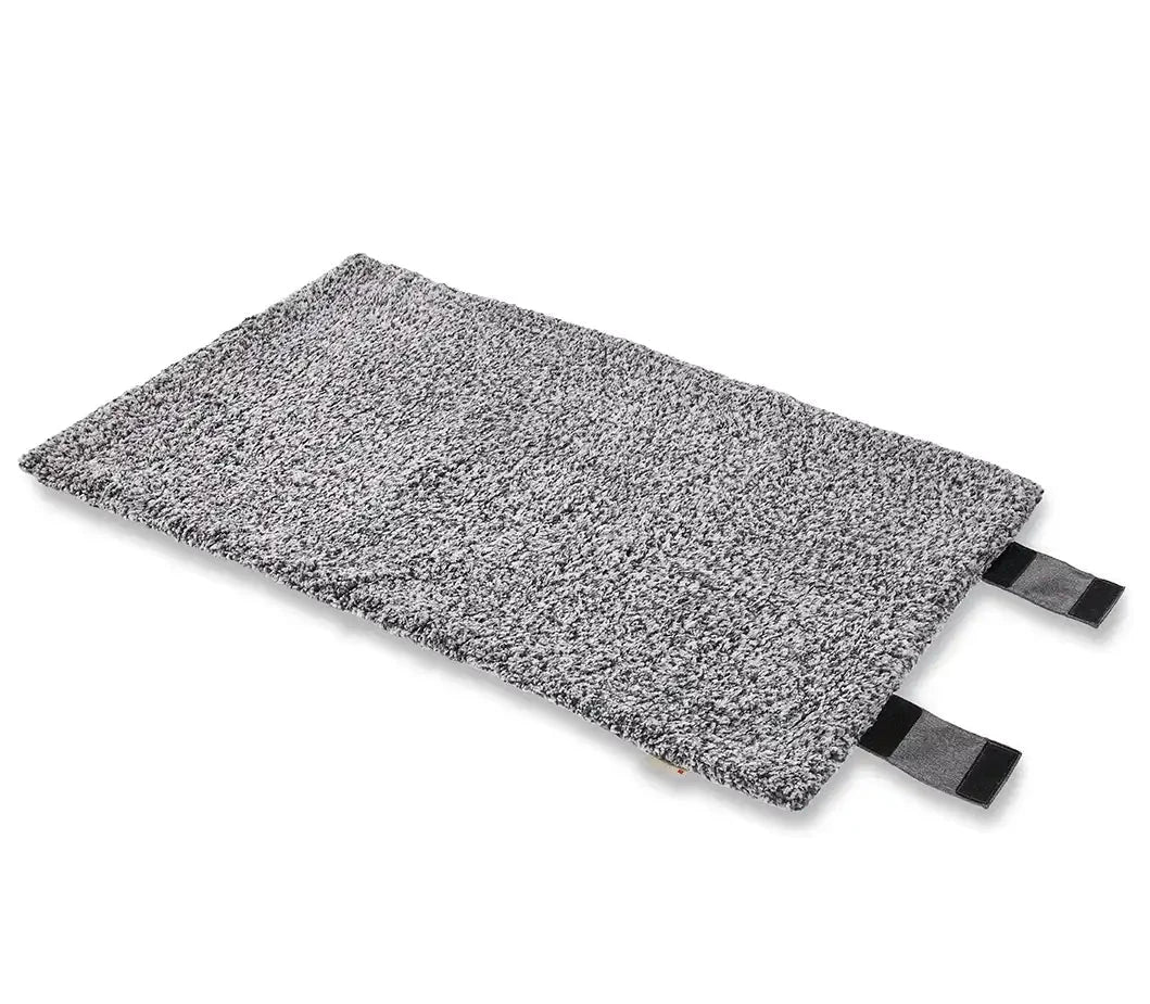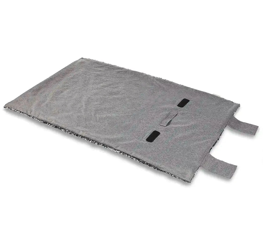Die wasserabweisende Unterseite schützt zuverlässig vor Nässe und Schmutz, während das zeitlose Salt & Pepper-Design zu jedem Outfit passt. Nach dem Einsatz lassen sich die Klettverschlüsse einfach schließen, sodass die Decke sauber bleibt.